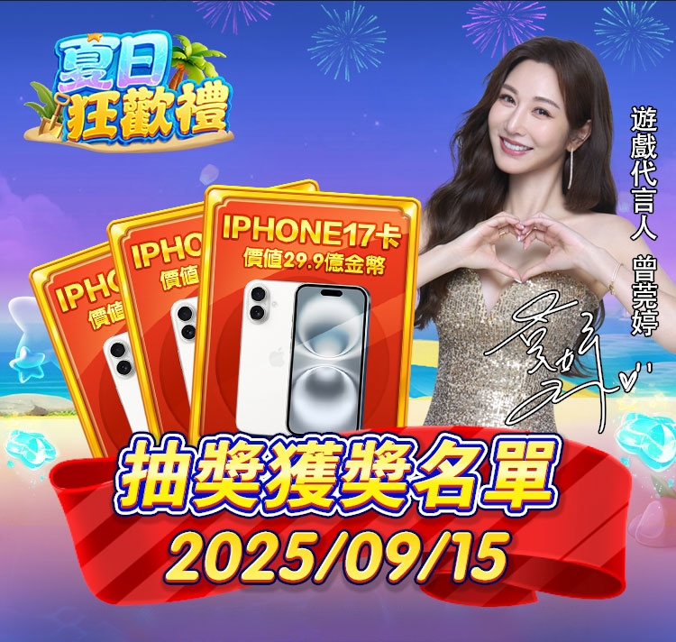1.所有獎項將於2025/09/16晚上18:30前寄送至遊戲內信箱。